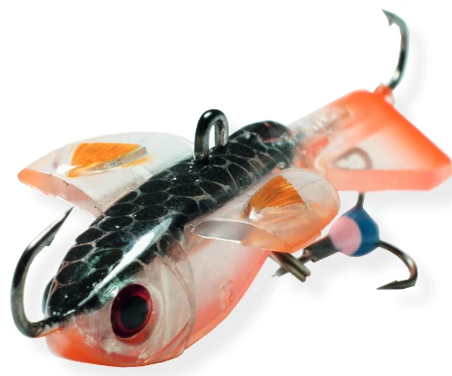 Alpine sliding is the new step when it comes to vertical lures. A completely unique plastic bait with folding wings that folds in and out when vibrating with the bait. The wings have two functions one of which is to imitate a stressed bait fish that breathes at high speed with the gills, the other is when you make a stronger jerk it slides down slowly and the fish comes easier and meets the bait and inhale it immediately. Used both in open water and ice fishing. Imitating a real fish “The wing movement” emits sound against the bait body. Can be used both from boat and from the ice.