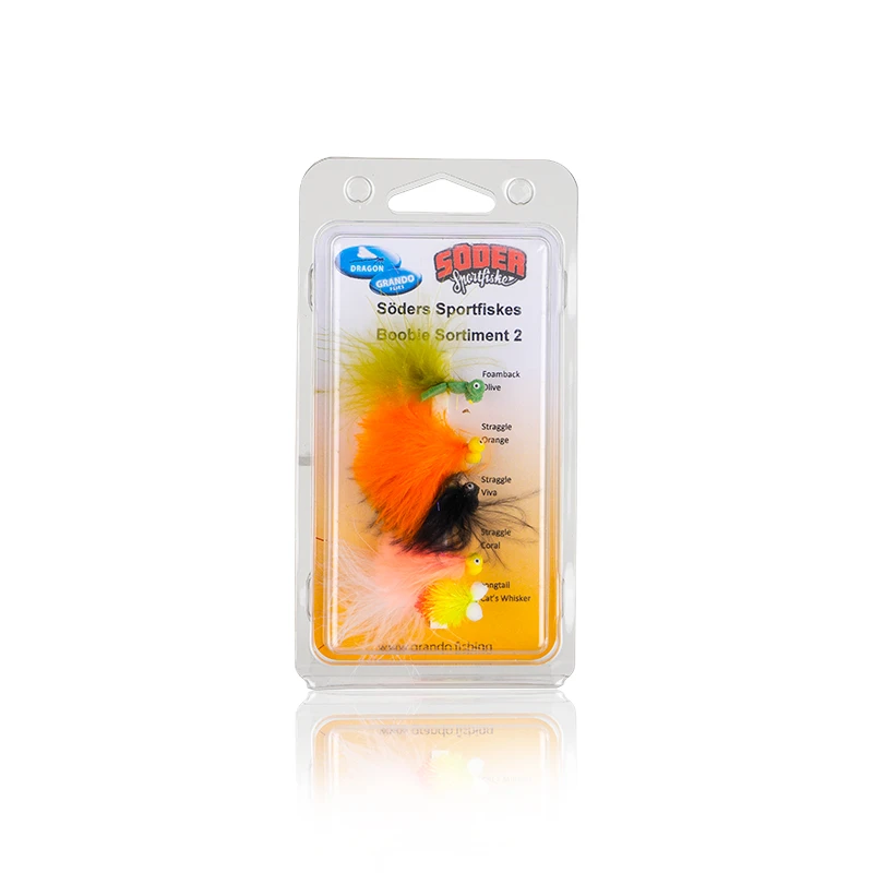 1x Foamback Olive1x Straggle Orange1x Straggle Viva1x Straggle Coral1x Longtail Cat’s Whisker